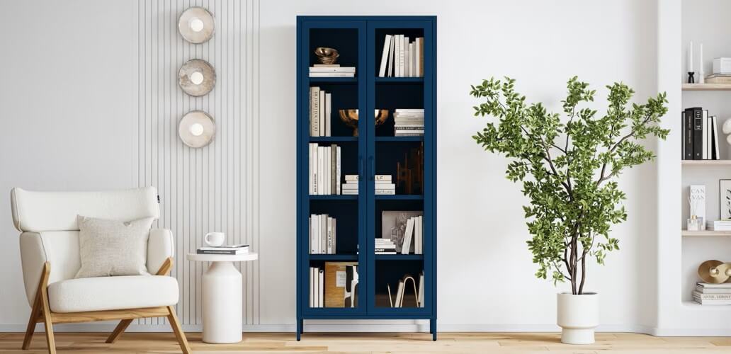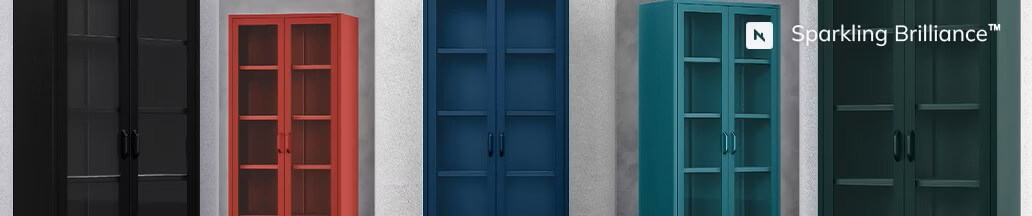 Dwudrzwiowa witryna metalowa ANGELO to przestronny i stylowy mebel, idealny do przechowywania zastawy stołowej, pamiątek z podróży czy kolekcji dekoracji. Dzięki zastosowaniu wyjątkowej powłoki Sparkling Brilliance™ nie tylko przyciąga wzrok, ale także wyróżnia się wysoką odpornością na uszkodzenia. To efektowny element aranżacji, który doda wnętrzu wyjątkowego charakteru.
