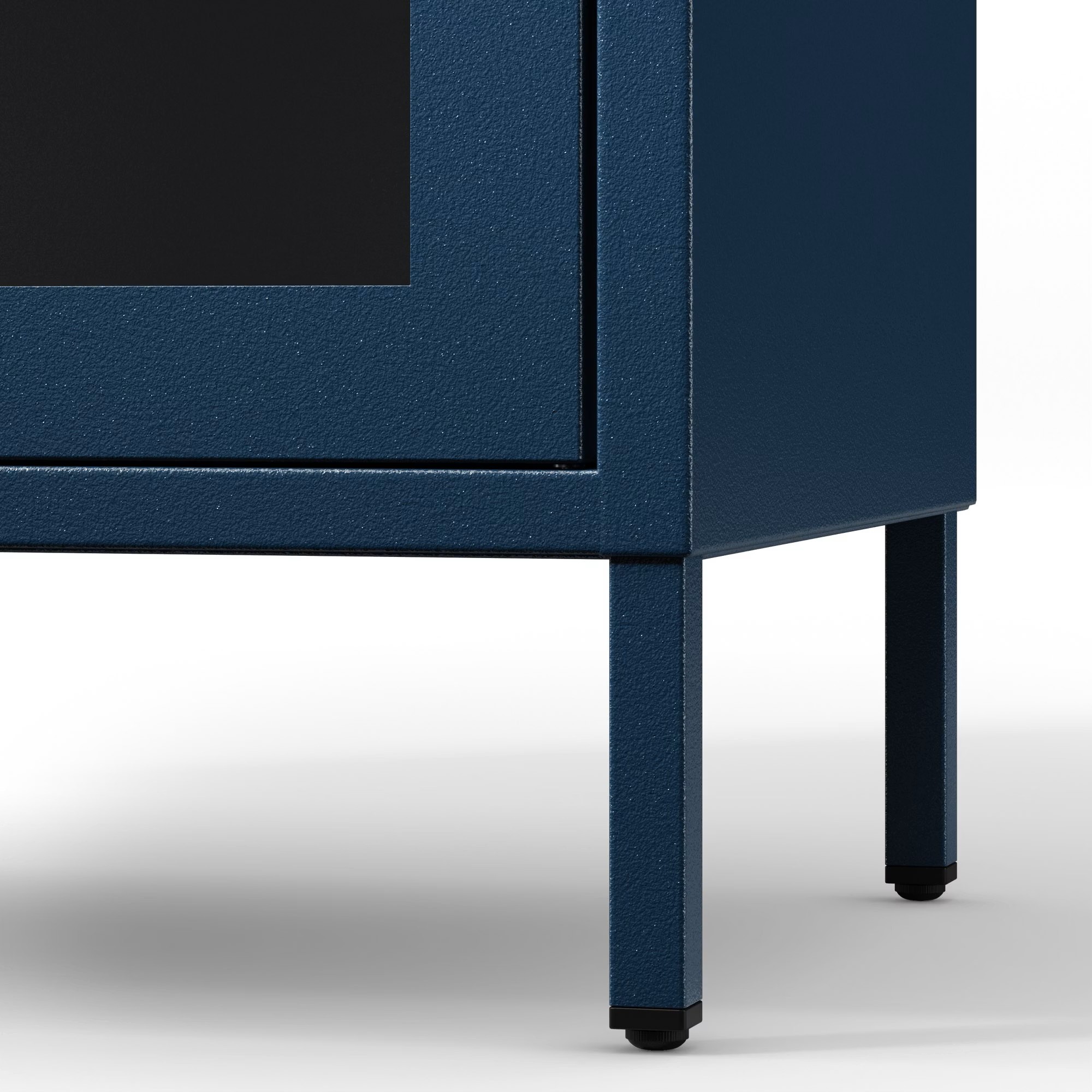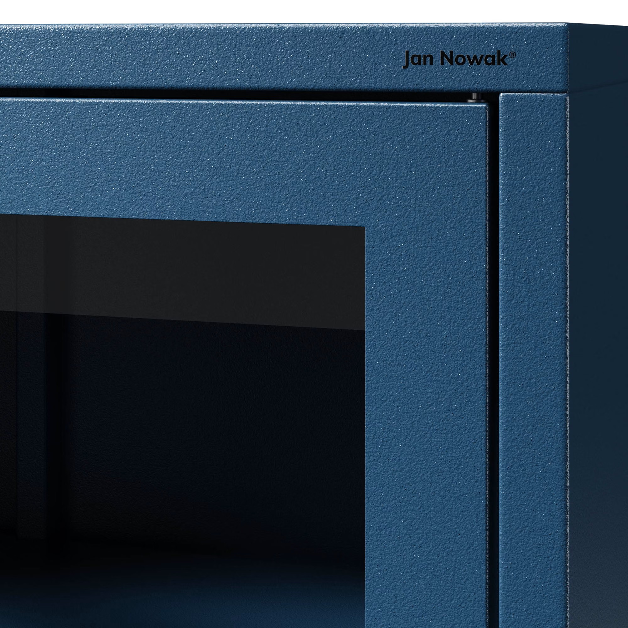 Witryna ANGELO zachwyca głębokim, granatowym kolorem, który doskonale wpisuje się w nowoczesne i industrialne wnętrza. Specjalna farba Sparkling Brilliance™ tworzy efekt delikatnego migotania, przypominającego błysk drobnych, świetlistych cząsteczek. Dzięki temu mebel sam w sobie staje się ozdobą przestrzeni.
