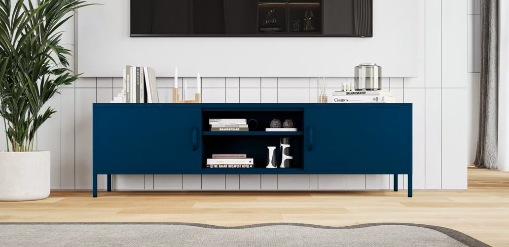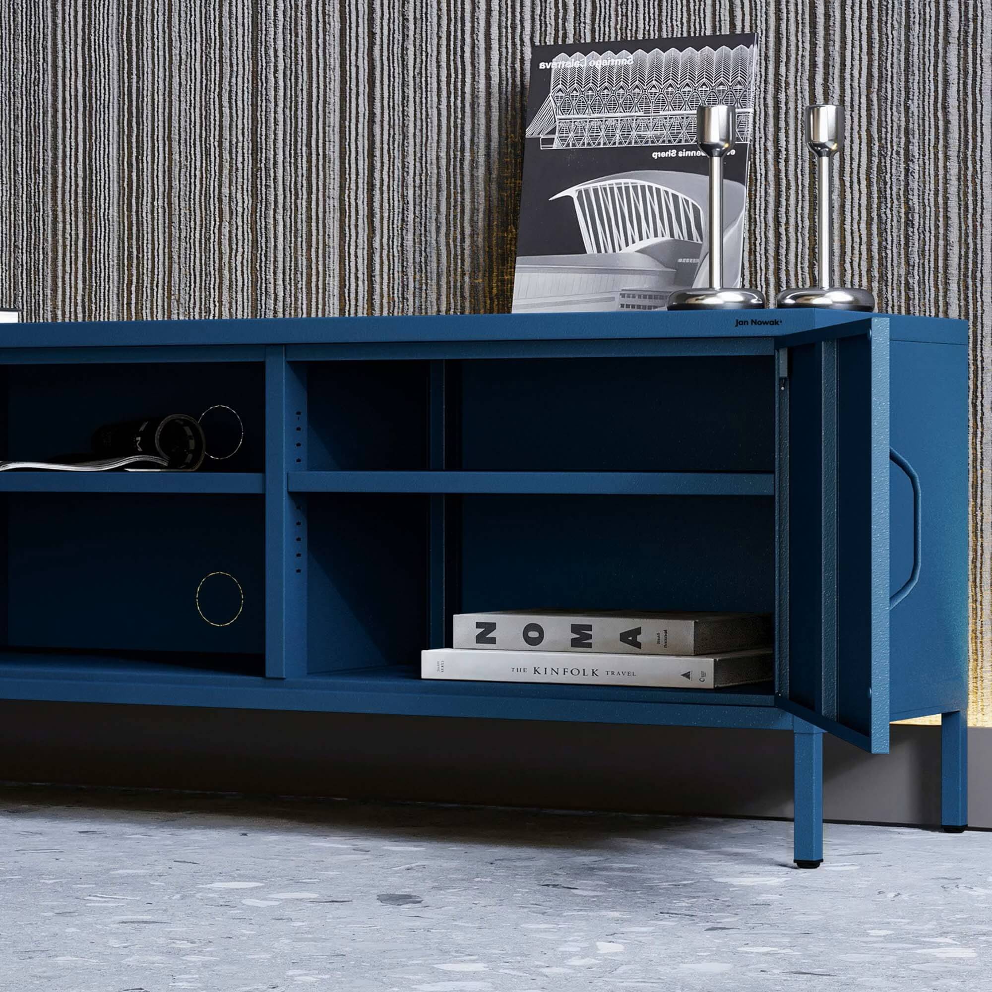 Granatowa metalowa szafka RTV długa XL- Rosaria