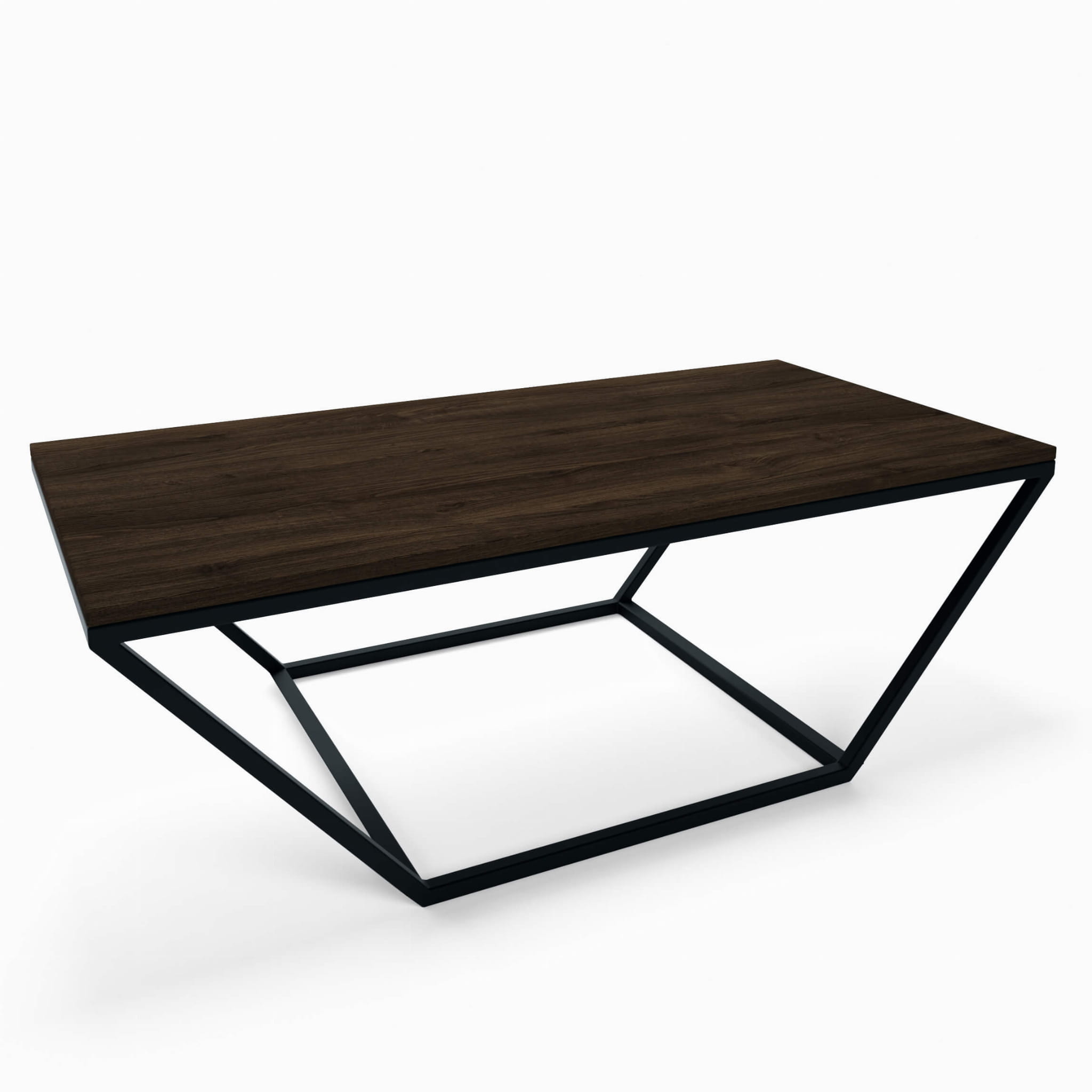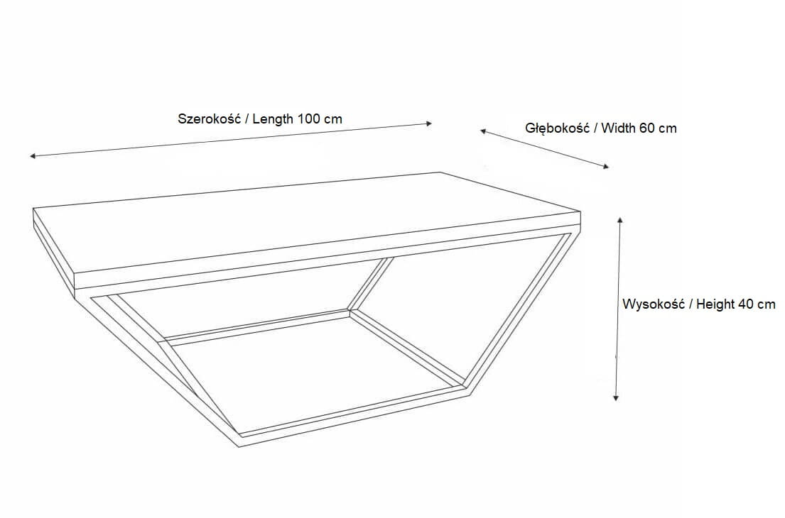 A modern coffee table with an original trapezoidal base. This is an offer for people who value unique, modern arrangements. The unusual frame gives the table a very original shape, which will perfectly emphasize the minimalist character of the interior. The table is simple, austere and at the same time very sophisticated, its interesting form attracts the eye with its modern design. It will be a central decoration or serve as a modern coffee table in the living room. It looks great in living rooms and bedrooms decorated in an industrial, loft style or in warmer arrangements such as boho loft, Scandinavian and even hygge.