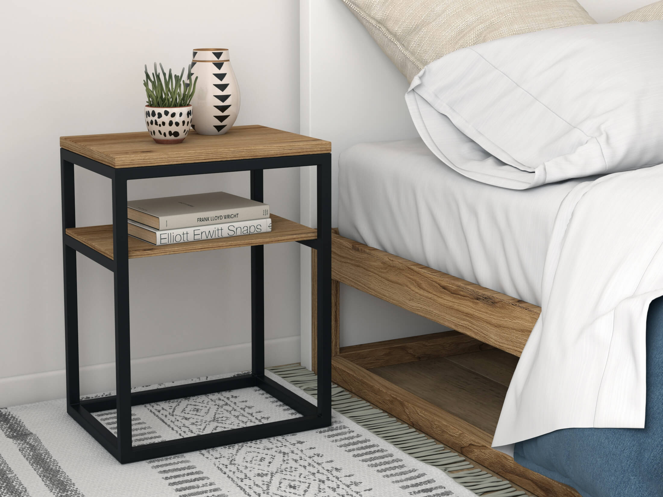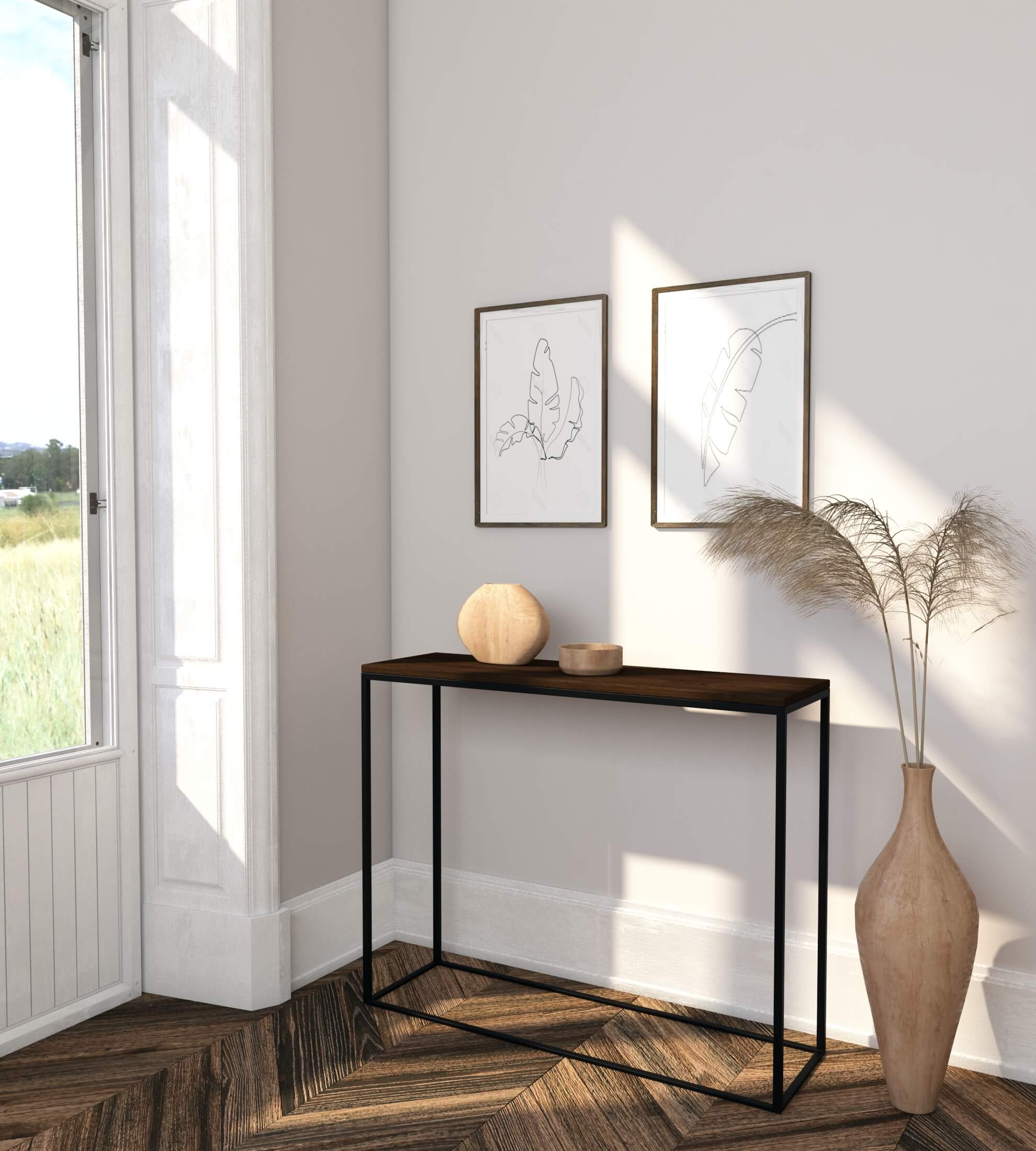 Minimalizm we wnętrzach to niekoniecznie trzymanie się jednego określonego stylu, ale kierowanie się potrzebą zachowania przestrzeni, funkcjonalności oraz unikania nadmiaru, zarówno w ilości mebli, faktur, kolorów jak i dodatków. Naturalnym wyborem będą tu meble industrialne, których prosta, czasami wręcz surowa forma idealnie wpisuje się w ideę minimalizmu. Pamiętajmy jednak, że ani meble, ani dodatki nie powinny dominować. Każdy mebel poza walorami dekoracyjnymi powinien również pełnić określoną funkcję. Tak jak nasz industrialna konsola Merrion, której prosta forma pozwala stworzyć nowoczesne, ale jednocześnie ciepłe wnętrze. Kilka drobiazgów? Jak najbardziej tak, ale zastanówmy się ile, to już dość. Co warto wyeksponować, a co ma dla nas wartość wyłącznie sentymentalną i może lepiej schować przed wzrokiem gości?