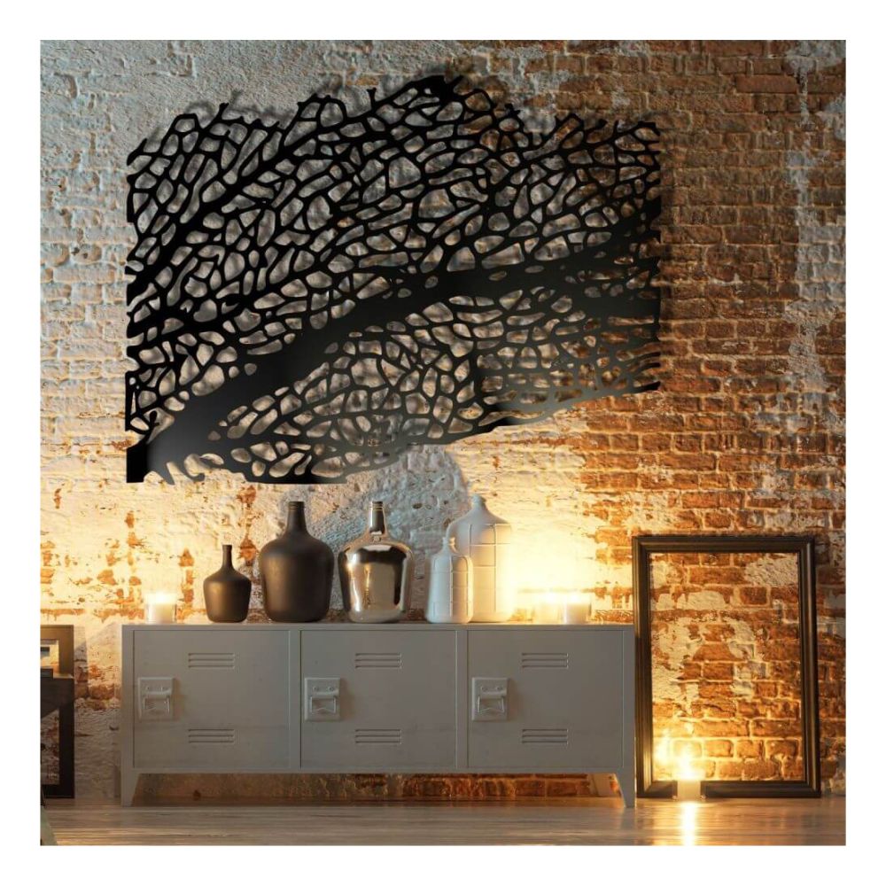 Dekoracja ścienna z metalu 3mm wycinanego laserowo. Dekor w stylu ORGANIC pasujący do wnętrz w stylu loft ale również glamour przy zastosowaniu farby złotej.