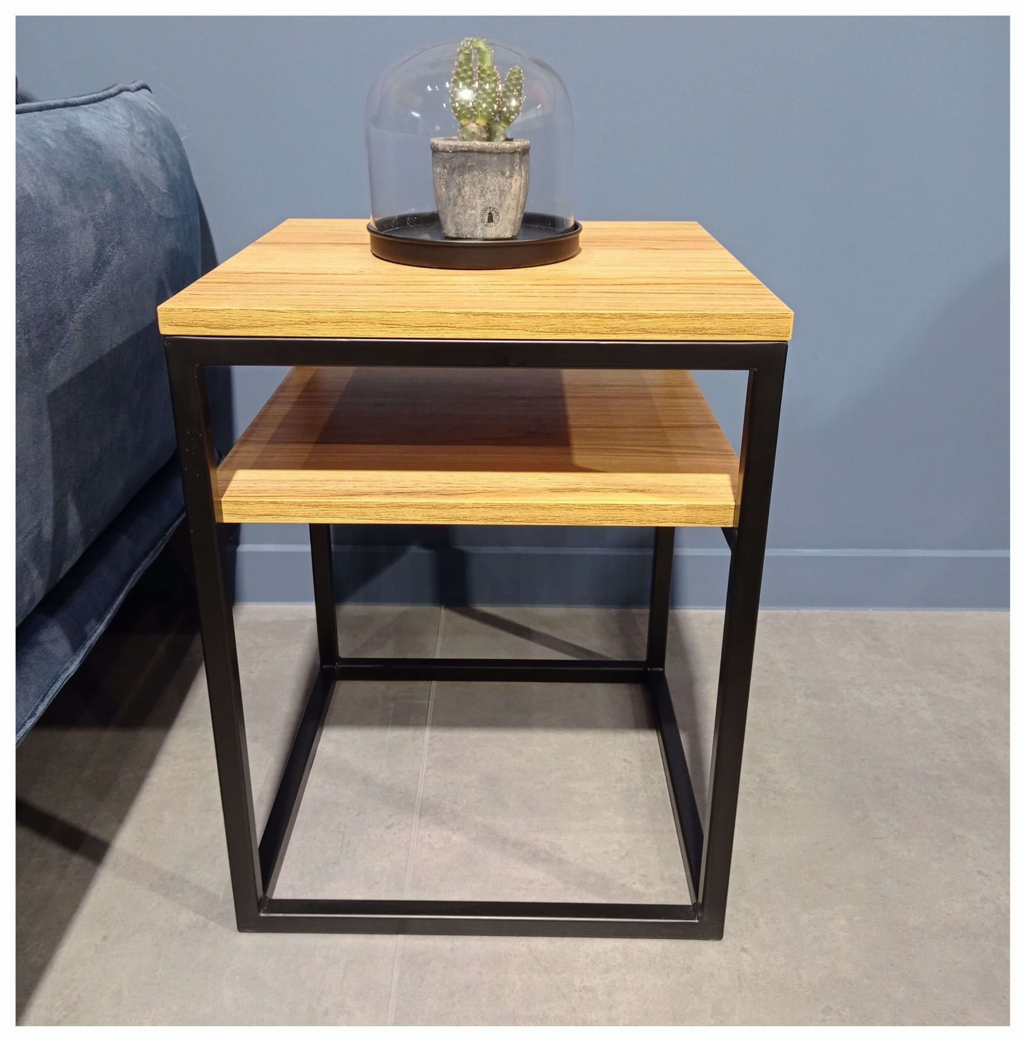 This is a simple, elegant bedside table that will beautifully emphasize the minimalist character of the bedroom. The table, although made of steel, is lightweight, and thanks to the additional shelf, also very practical. Top made of high quality furniture board, perfectly reflects the beauty of natural wood, which is its great advantage. This furniture, which is a perfect combination of raw simplicity and elegance, will be an ideal choice for arrangements in industrial, loft or boho loft style.