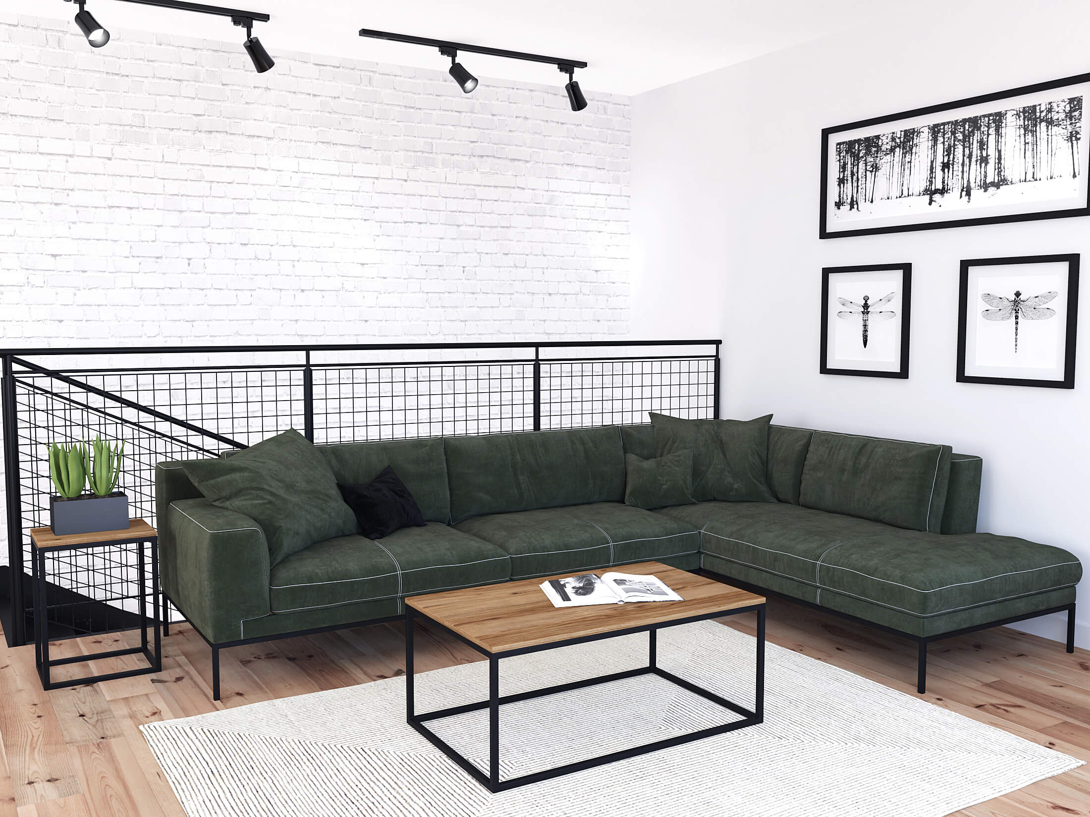 The beautiful Newtown coffee table is a real "must have" in any loft-style living room. A table with a rectangular top and a characteristic, fashionable frame. Made of steel and high-quality furniture board with a beautiful pattern of natural wood, it will perfectly emphasize the loft atmosphere of the interior. The table is light, practical, and its simple form attracts the eye with its modern design. It is a perfect combination of raw simplicity and beauty. It can be the focal point of the living room, thus being a valuable asset for lovers of loft, industrial or minimal styles, but it also perfectly harmonizes with warmer arrangements such as retro, boho loft, Scandinavian and even hygge style.