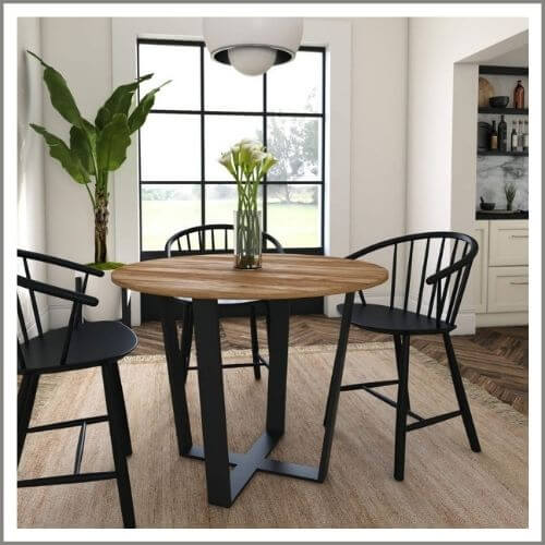 Analogicznie, jak w przypadku stołu prostokątnego, stół kwadratowy najlepiej prezentuje się w jadaniach również o tym kształcie. Kwadratowe stoły jadalniane są przeważnie mniejsze niż prostokątne, tym samym tworzą bardziej intymny klimat we wnętrzu, co może stanowić idealna propozycja dla par. To także dobre rozwiązanie posiadaczy mniejszych mieszkań lub kuchni, gdzie liczy się wykorzystanie każdej wolnej przestrzeni.