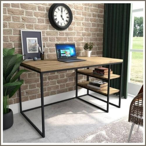 Dla tych, którzy wolą bardziej tradycyjne rozwiązania polecamy biurko Dominick. Jego forma również zachwyca prostotą i z pewnością zadowoli fanów stylu industrialnego, jednak zostało ono dodatkowo wzbogacone o dwie półki. Biurko nie straciło na lekkości, a zyskało na funkcjonalności. Jak zawsze w OneLoft, istnieje możliwość dopasowania rozmiaru i koloru biurka do potrzeb Klienta.