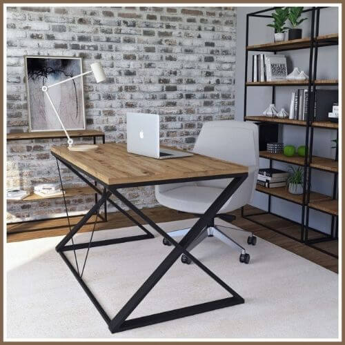 Dla osób ceniących ład, ale lubiących niesztampowe rozwiązania polecamy Industrialne Biurko Kapper. To biurko o bardzo ciekawym kształcie. Pierwsze skrzypce gra tu stelaż, gdzie tradycyjne nogi zostały zastąpione grubszymi, skrzyżowanymi profilami. Dodatkowy, industrialny element dekoracyjny stanowi zdobienie w kształcie litery V. Biurko przyciąga wzrok nietypową konstrukcją, mocny, grubszy stelaż idealnie podkreśli wystrój wnętrza w stylu loft.