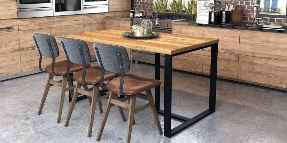 Jeśli naszą kuchnie cechuje otwarta przestrzeń, warto zdecydować się na odpowiedni stół. Kuchnia loft nie może się wręcz obejść bez stołu w stylu industrialnym. Stół z blatem z litego drewna potrafi wprowadzić do pomieszczenia dużo uroku. Surowy wygląd mebla zachwyca i inspiruje. Jeśli natomiast lite drewno nie jest opcją dla nas, możemy zdecydować się na blat laminowany. Płyta meblowa nadal będzie wyglądać bardzo estetycznie i stylowo, ale będzie też „lżejsza” wizualnie, co dla niektórych osób może stanowić atut.